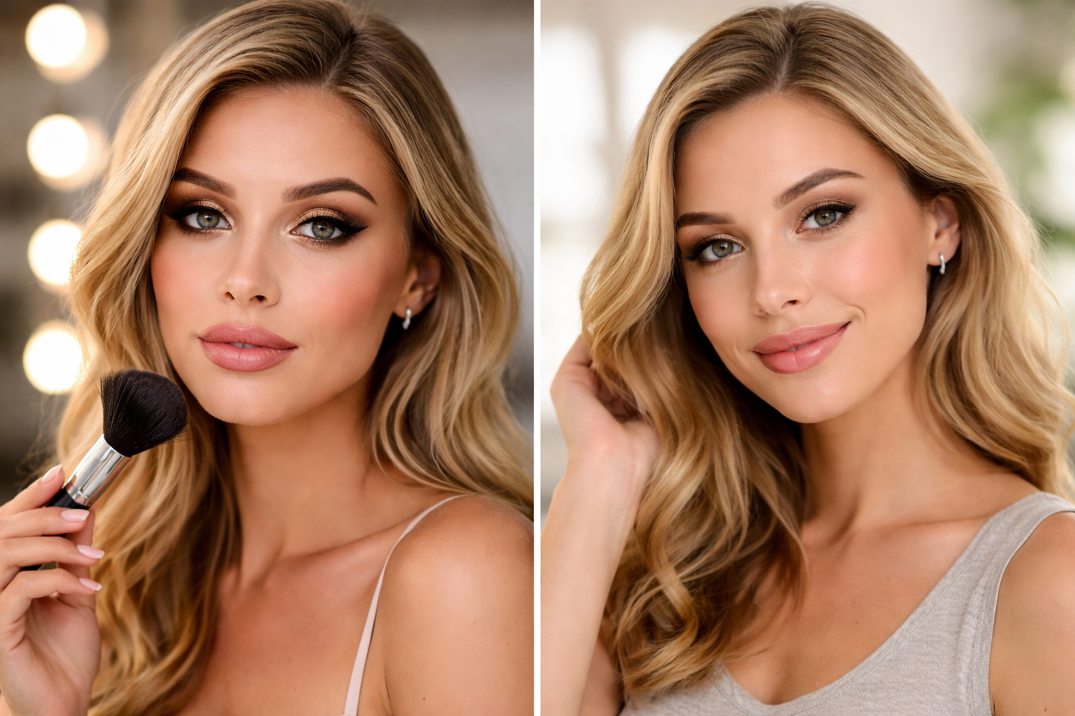 Daylight, indoor warm lighting, fluorescent office lights, and studio flash all affect makeup differently. The same face can look completely transformed under each condition.